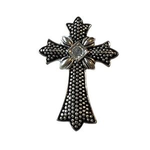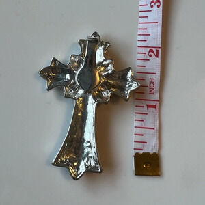 Silver tone Cross Pendant for your Necklace with rhinestones. Has a Magnetic Clasp for your Chain, Approx 2.25” long.