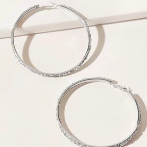 Silver Rhinestone Decor Hoop Earrings