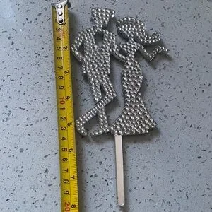 Elegant silver rhinestone decorative topper featuring a couple design. Great for cakes, flowers, or other decorative arrangements. Perfect for weddings or special occasions. Excellent condition; no stones missing.