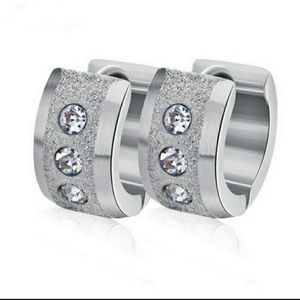 Silver Rhinestone Embedded Earrings Stainless Steel