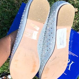 Super cute, comfortable flats covered with silver rhinestones. Perfect for proms, graduations, sweet 16’s, etc. Only worn once !!! Comes with the box. 10/10 condition. Size: 8 1/2