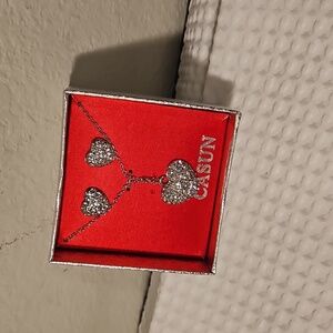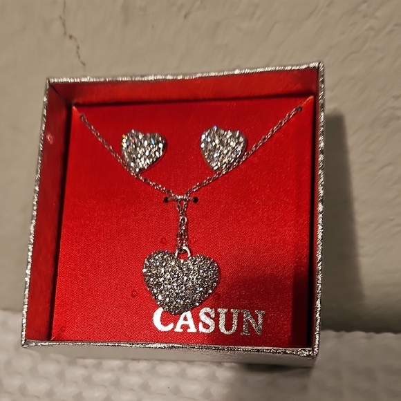 Elegant jewelry set featuring a stunning silver bling heart design. Perfect for adding a touch of sparkle to any outfit. New. (Ken)