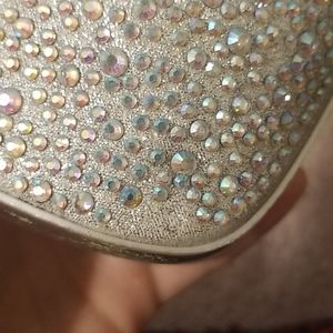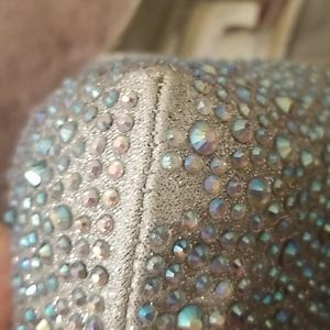 Silver AB Rhinestone Heels! On the right heel at the seam and bottom a few stones are missing, please see pictures! So many crystals you cannot tell until you look up close at the shoes! 2 inch platform, 6 inch heels! Box included!