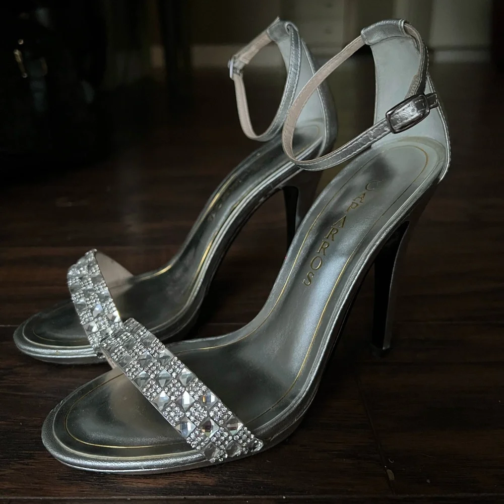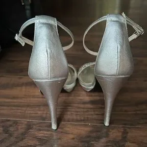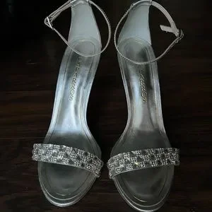 Silver heels with rhinestones. Size 7.5. Worn once to prom :)