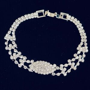 Beautiful inlaid rhinestone bracelet that is silver plated. Spectacular shine! Perfect for prom, weddings, pageants or other formal events.