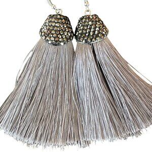 Silver Rhinestone Tassel Earrings Razzle Riot