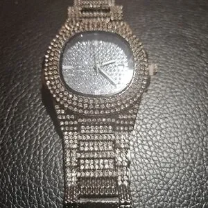 Elegant silver watch adorned with sparkling rhinestones. Perfect for adding a touch of glamour.