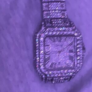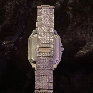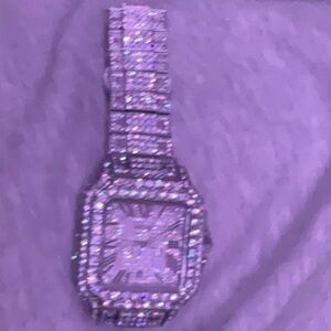 Elegant silver watch adorned with sparkling rhinestones. Perfect for adding a touch of glamour.