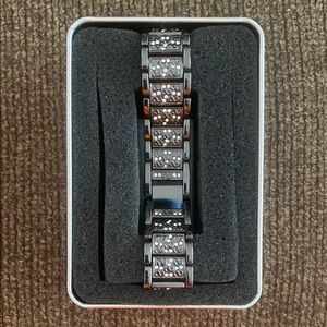 Elegant shiny black watch band (compatible with Apple Watch) with sparkling rhinestones. Perfect for adding a touch of glamour to your watch.