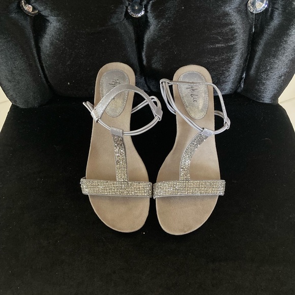 Silver Rhinestone Wedge Sandals