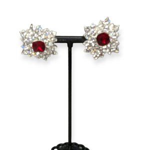 EUC rhinestone, silver and red gem stone post earrings. See pictures for measurements.