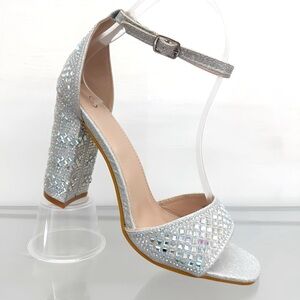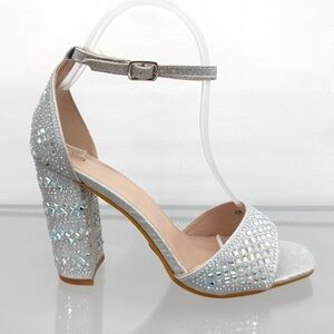 Silver Rhinestones Open Toe Heels