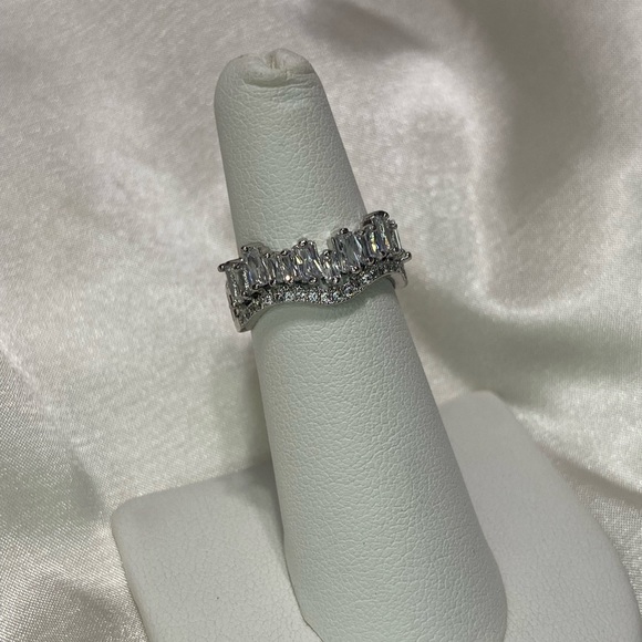 Rhodium plated silver adjustable ring. Baguette shaped CZ. Only available in silver. You can adjust the ring to fit sizes 6-10. Adjustable ring. Brand new. Good quality. The ring is one size