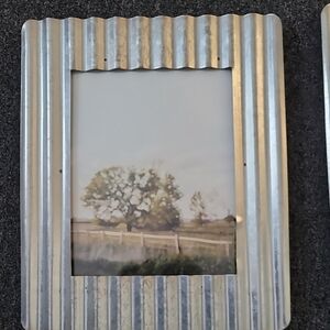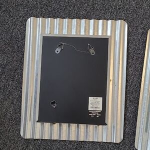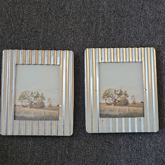 Set of two silver ribbed picture frames. Perfect for home decor. spots are rust that are part of the frames look.8x10 picture. overall 14 x 11 1/2