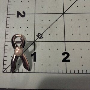 This elegant silver ribbon brooch, adorned with a pearl accent, adds a touch of sophistication to any outfit.
