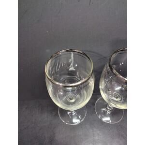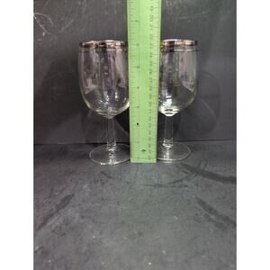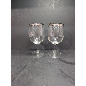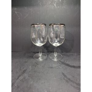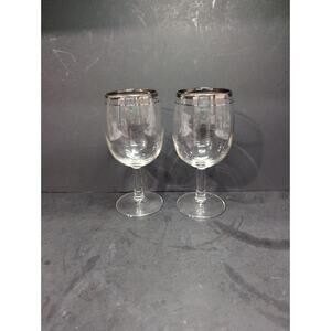 Silver Rimmed Wine Glasses, Set of 2, Vintage Stemware, Midcentury 10 Oz Barware