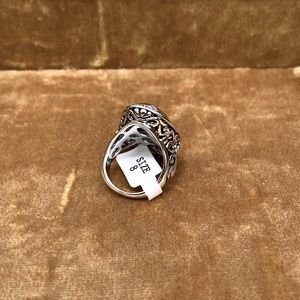 Brass base, antique rhodium plated ring.
