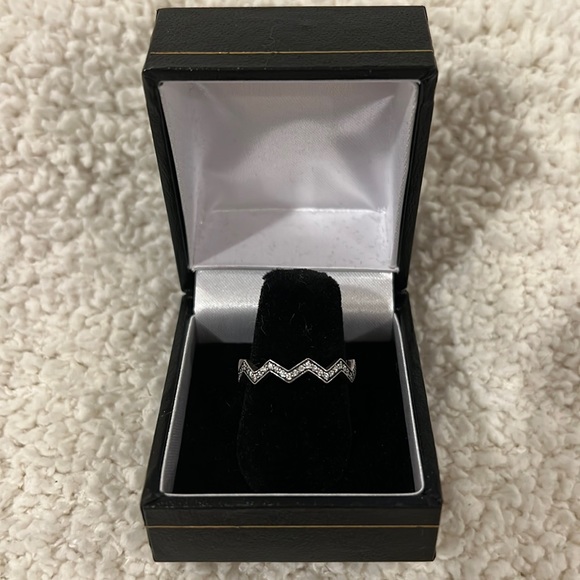 This is a Pandora ring with a unique zig zag design. Made from sterling silver and cubic zirconias.