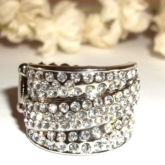 Silver Ring Costume Jewelry Faux White Diamond Rhinestone Stretch Band C241