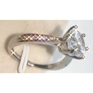 Silver Ring Diamond Simulant Wedding Adjustable Size 6 to 8