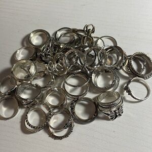 Elegant silver ring set with various designs. Perfect for accessorizing any outfit. Variety ring set with sizes for any and all fingers. 22 silver rings.
