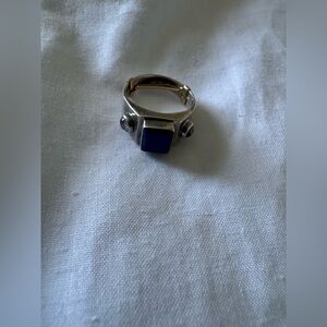 silver ring featuring a striking blue stone. Perfect for adding a touch of color to any outfit.