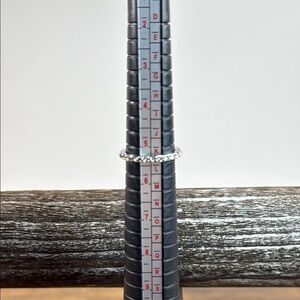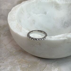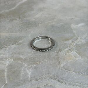 Elegant silver ring adorned with clear stones. Perfect for any occasion.