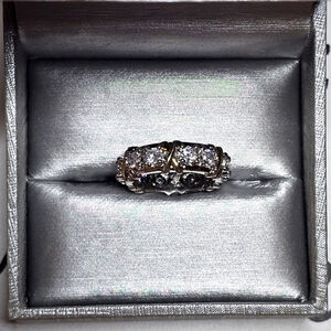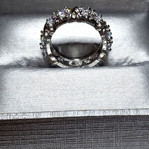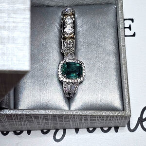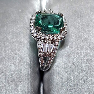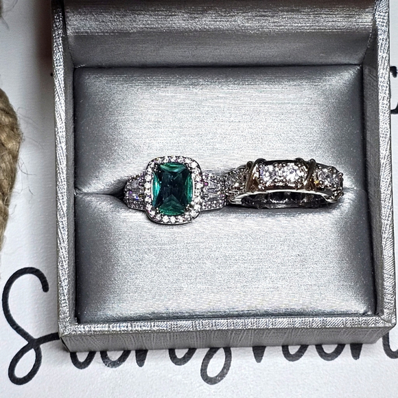 The green ring is size 6, and the XOXO ring is size 4. Never worn and stored in a jewelry box.