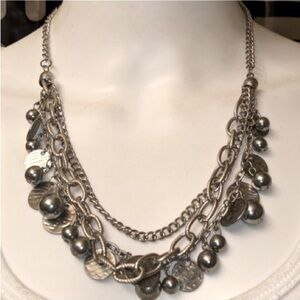 Silver Rocker Rebel Edgy Layered Bead Discs Coins Textured Chain Necklace