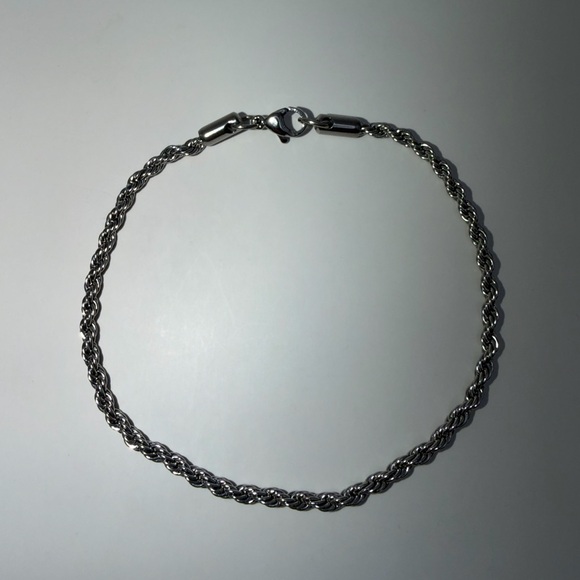 Minimalist rope chain bracelet with a clean silver-tone finish. Material: stainless steel. Everyday essential. Brand new. 8 inch. Unisex.