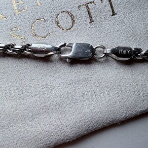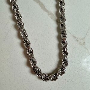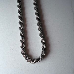 Twisted rope chain design. Sleek and versatile, chain is thick 925 Italian silver diamond cut and factory dipped in Rhodium, which gives an incredible shine with the diamond cut.