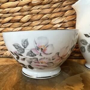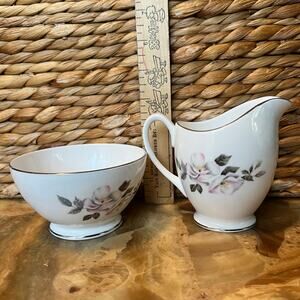 Royal Adderley cream and matching sugar bowl called silver rose. In good condition no chips or cracks. Please refer to photos for current condition and measurements.