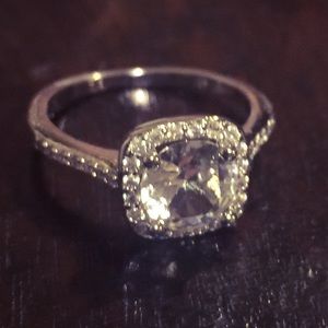 Silver Round Cut CZ Diamond Square Halo Engagement Ring.