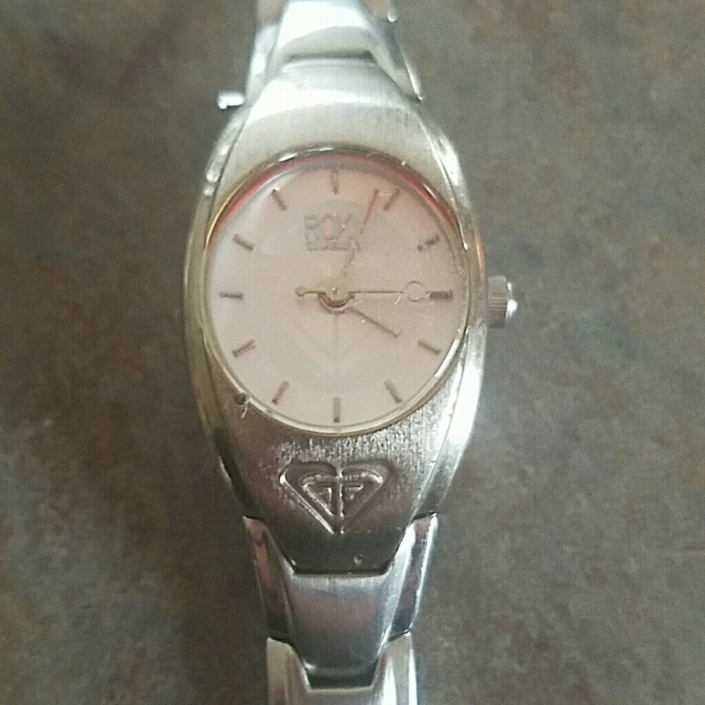 Silver slim Roxy watch, loose pin but easy fix and needs a new battery