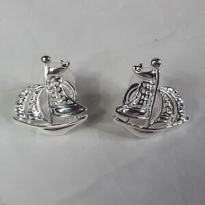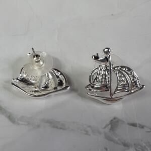 Silver Sailing Ship Post Earrings