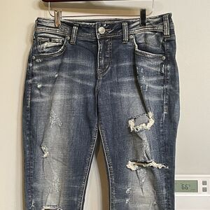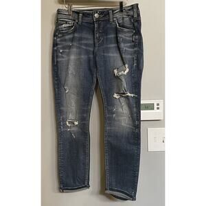 Silver Sam Jeans Light Blue Distressed Stretch Denim Womens Sz 28x25 NWOT