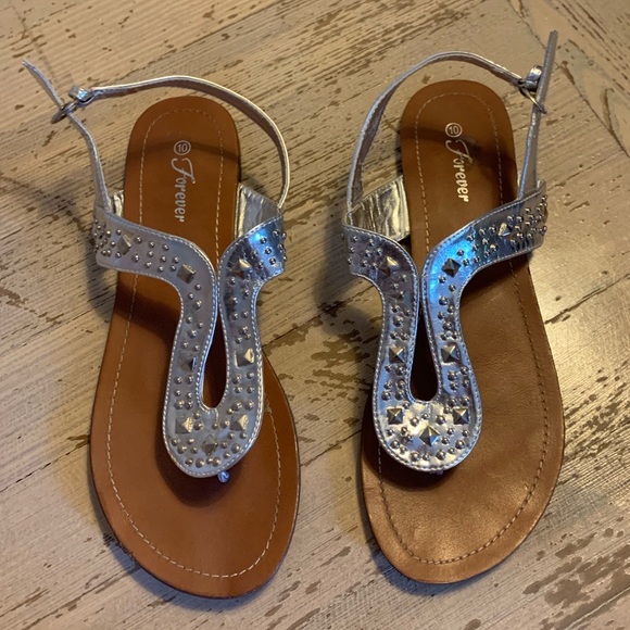 Size 10 silver sandals by brand Forever. Worn TWICE.