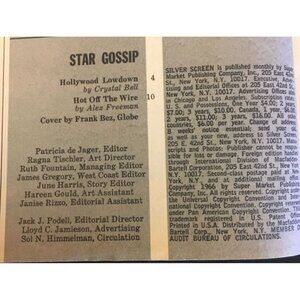 Vintage December 1966 issue of Silver Screen Magazine featuring Ursula Andress and Cary Grant. A collector's gem offering a nostalgic look at Hollywood's golden era.