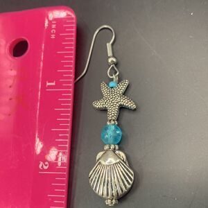 Long dangling Silver tone Sea Shell Starfish Earrings