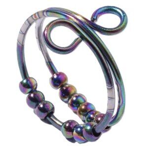 Silver - Sensory, Fidget, Spinner, or Worry Ring - Rainbow Metal & Rainbow Beads