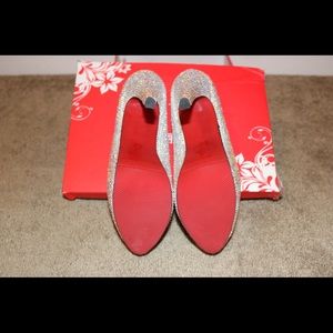 These are some very gorgeous heels. Not so high nor so low. Very comfortable. Unfortunately they do not fit. Never worn! Brand new! Bottom of heels are red!