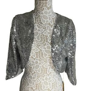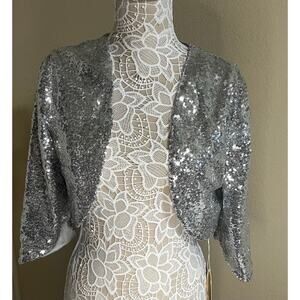 Silver Sequin Bolero Shrug Jacket NWT | Sparkly Evening Party Cover-Up- size 14