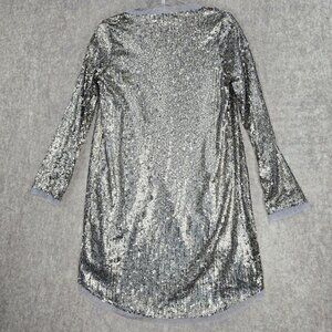 Silver Sequin Long Sleeve Open Front Cardigan Size 12 By Mia Joy