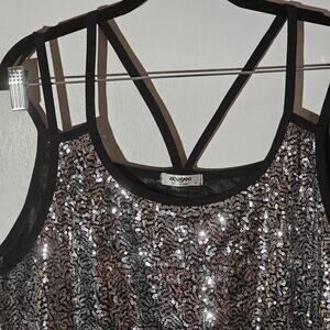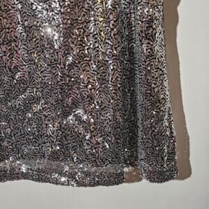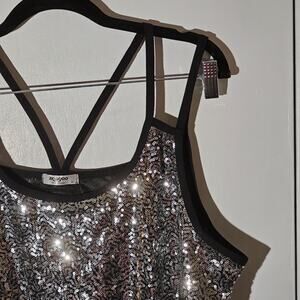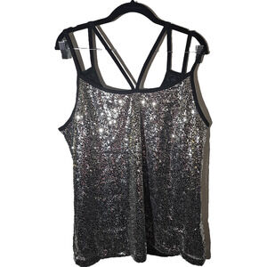 Silver Sequin Multistrap Long Tank Sz XL Sparkle New Years Holiday Stretch