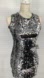 Dazzle the night away in this stunning silver sequin mini dress from Frederick's of Hollywood. Featuring a sleeveless design and a classic crew neckline, this bodycon dress is perfect for cocktail parties and nights out. The densely packed sequins create a shimmering effect, making it a standout piece for any special occasion. The grey material on the back seems to have pulls, but I was told that is the way the material is. Looks beautiful overall.