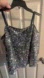 Shine bright with this stunning silver sequin top with adjustable straps. Perfect for a night out or special occasion.