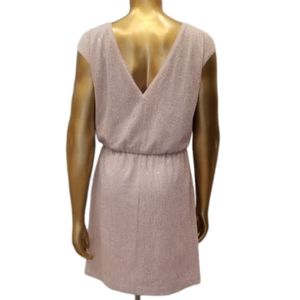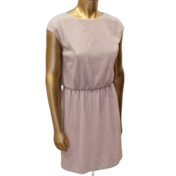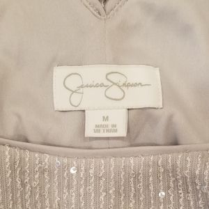 This lovely, light gray, sparkling, fully lined, midi dress with slit sleeves, low back and elastic waist by Jessica Simpson really has pizzazz!