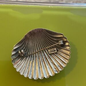 Vintage silver shell-shaped brooch. Beaucraft Sterling Silver company 1947-2004 Providence, RI.