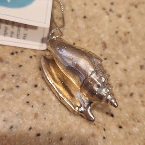 This is a new Prosperity Tree Farms Silver Shell Christmas Ornament.