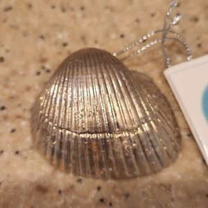 This is a new Prosperity Tree Farms Silver Shell Christmas Ornament.